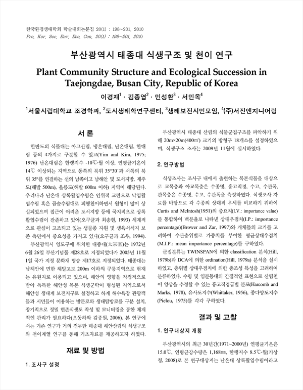 Plant Community Structure and Ecological Succession in Taejongdae, Busan City, Republic of Korea