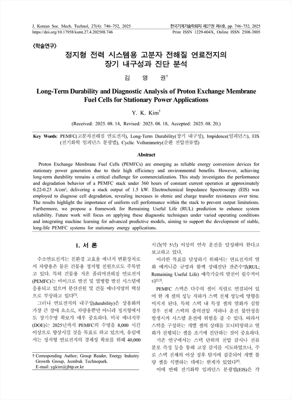 Proton Exchange Membrane Fuel Cells (PEMFCs) are emerging as reliable energy conversion devices for stationary power generation due to their high efficiency and environmental benefits. However, achieving long-term durability remains a critical challenge for commercialization. This study investigates the performance and degradation behavior of a PEMFC stack under 360 hours of constant current operation at approximately 0.22-0.23 A/cm², delivering a stack output of 1.5 kW. Electrochemical Impedance Spectroscopy (EIS) was employed to diagnose cell degradation, revealing increases in ohmic and charge transfer resistances over time. The results highlight the importance of uniform cell performance within the stack to prevent output limitations. Furthermore, we propose a framework for Remaining Useful Life (RUL) prediction to enhance system reliability. Future work will focus on applying these diagnostic techniques under varied operating conditions and integrating machine learning for advanced predictive models, aiming to support the development of stable, long-life PEMFC systems for stationary energy applications.