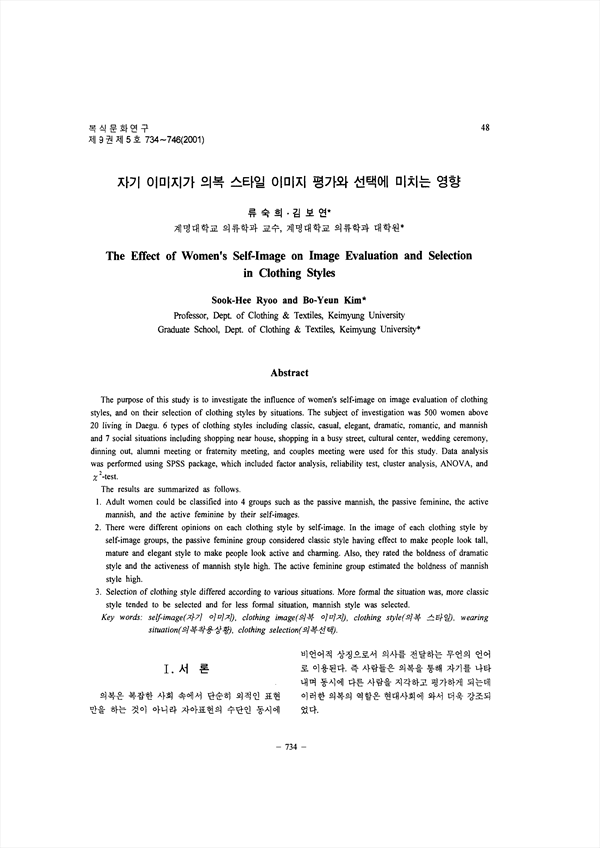 자기 이미지가 의복 스타일 이미지 평가와 선택에 미치는 영향