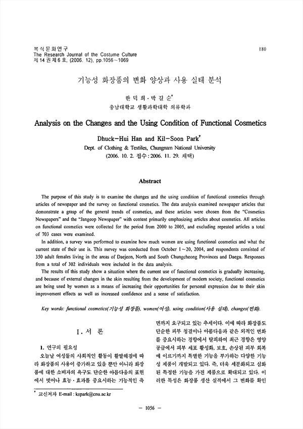 기능성 화장품의 변화 양상과 사용 실태 분석