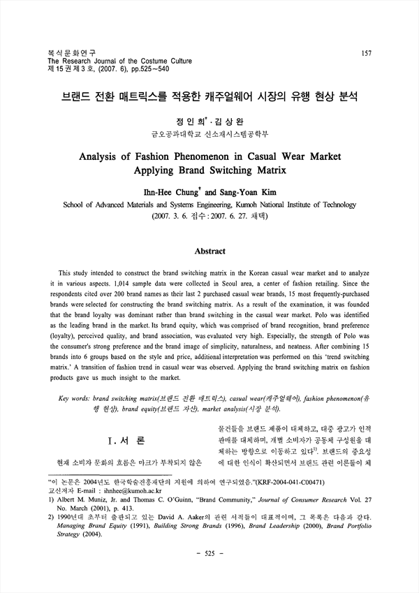 브랜드 전환 매트릭스를 적용한 캐주얼웨어 시장의 유행 현상 분석
