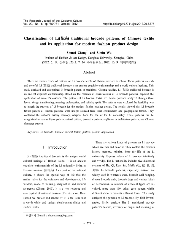 Classification of Li (黎) traditional brocade patterns of Chinese textile and its application for modern fashion product design