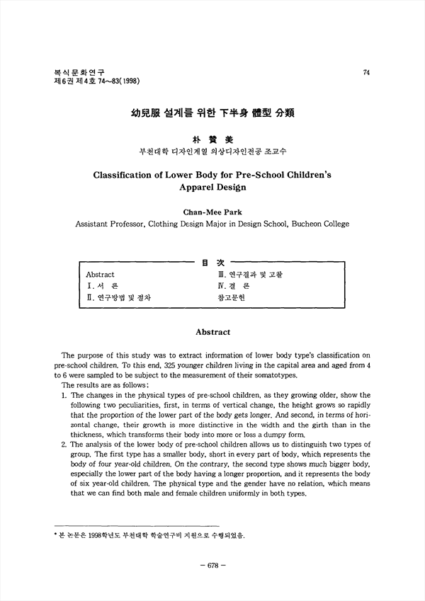 유아복 설계를 위한 하반신 체형 분류