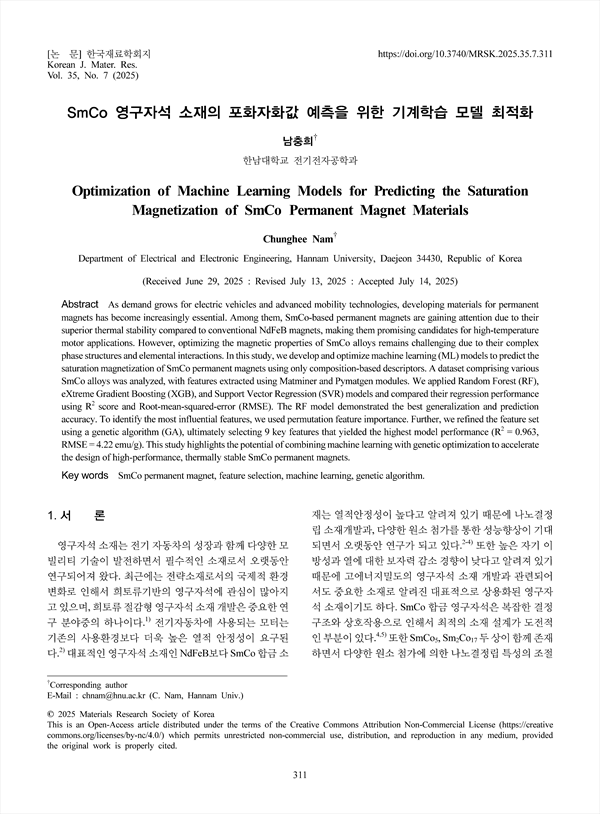 Optimization of Machine Learning Models for Predicting the Saturation Magnetization of SmCo Permanent Magnet Materials