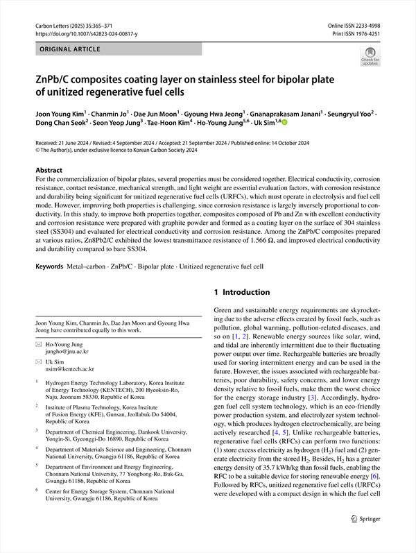 • Uk Sim(Hydrogen Energy Technology Laboratory, Korea Institute of Energy Technology (KENTECH), 200 Hyeoksin‑Ro, Naju, Jeonnam 58330, Republic of Korea, Center for Energy Storage System, Chonnam National University, Gwangju 61186, Republic of Korea) Corresponding author