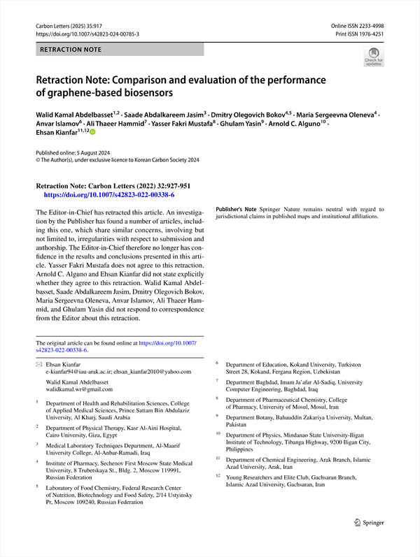 Retraction Note: Comparison and evaluation of the performance of graphene-based biosensors