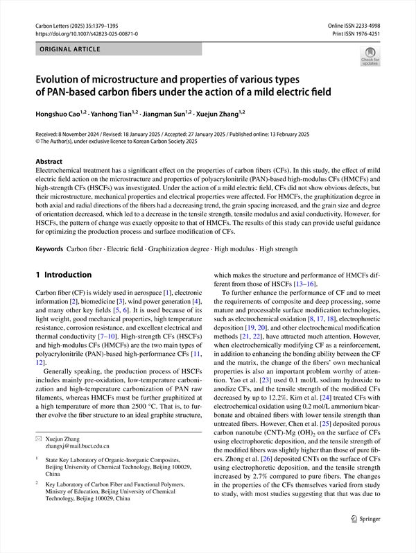 Evolution of microstructure and properties of various types of PAN‑based carbon fibers under the action of a mild electric field KCI 등재