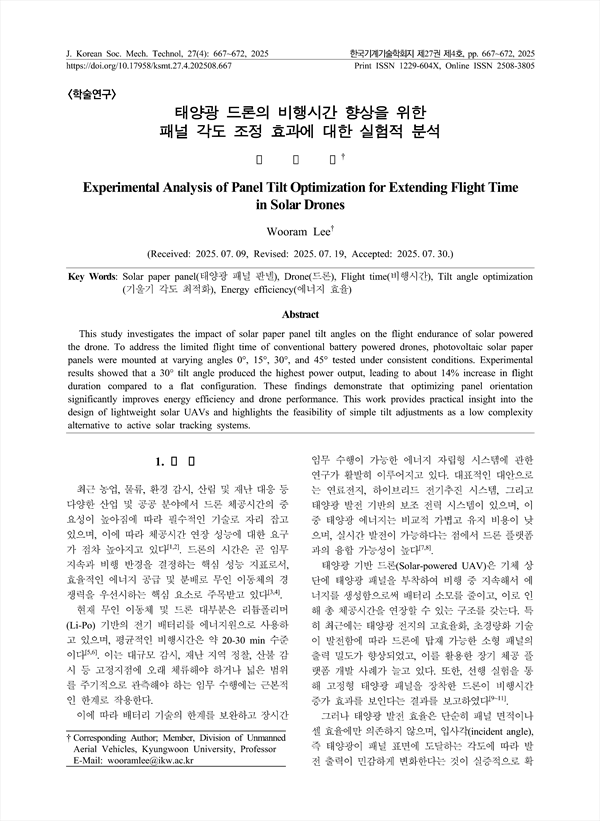 This study investigates the impact of solar paper panel tilt angles on the flight endurance of solar powered the drone. To address the limited flight time of conventional battery powered drones, photovoltaic solar paper panels were mounted at varying angles 0°, 15°, 30°, and 45° tested under consistent conditions. Experimental results showed that a 30° tilt angle produced the highest power output, leading to about 14% increase in flight duration compared to a flat configuration. These findings demonstrate that optimizing panel orientation significantly improves energy efficiency and drone performance. This work provides practical insight into the design of lightweight solar UAVs and highlights the feasibility of simple tilt adjustments as a low complexity alternative to active solar tracking systems.