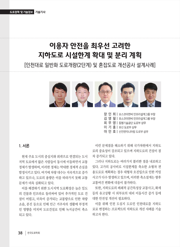 이용자 안전을 최우선 고려한 지하도로 시설한계 확대 및 분리 계획 [인천대로 일반화 도로개량(2단계) 및 혼잡도로 개선공사 설계사례]
