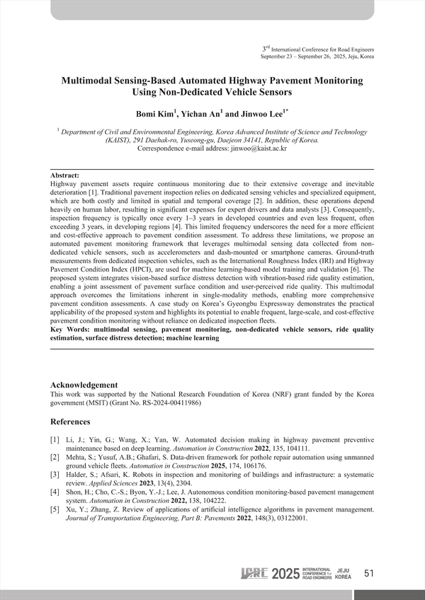 Jinwoo Lee(Department of Civil and Environmental Engineering, Korea Advanced Institute of Science and Technology (KAIST), 291 Daehak-ro, Yuseong-gu, Daejeon 34141, Republic of Korea.)