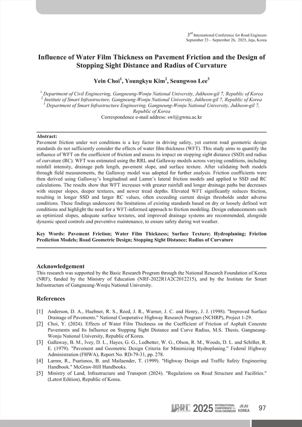 2025 INTERNATIONAL CONFERENCE FOR ROAD ENGINEERS (2025.09)