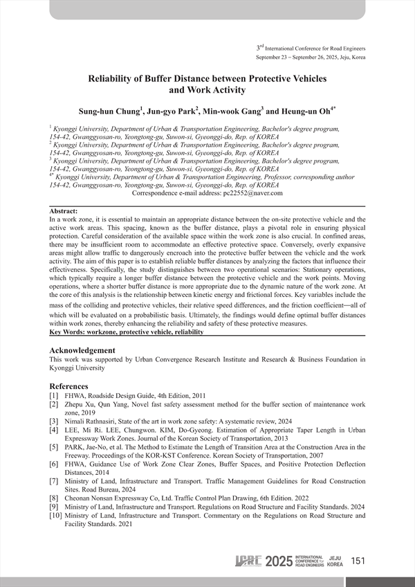 Sung-hun Chung(Kyonggi University, Department of Urban & Transportation Engineering, Bachelor's degree program, 154-42, Gwanggyosan-ro, Yeongtong-gu, Suwon-si, Gyeonggi-do, Rep. of KOREA)