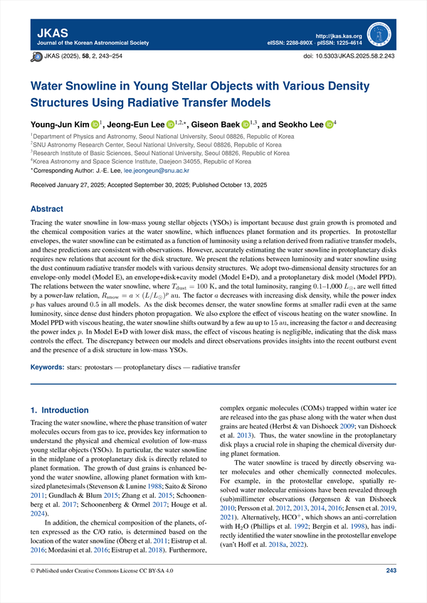 Tracing the water snowline in low-mass young stellar objects (YSOs) is important because dust grain growth is promoted and the chemical composition varies at the water snowline, which influences planet formation and its properties. In protostellar envelopes, the water snowline can be estimated as a function of luminosity using a relation derived from radiative transfer models, and these predictions are consistent with observations. However, accurately estimating the water snowline in protoplanetary disks requires new relations that account for the disk structure. We present the relations between luminosity and water snowline using the dust continuum radiative transfer models with various density structures. We adopt two-dimensional density structures for an envelope-only model (Model E), an envelope+disk+cavity model (Model E+D), and a protoplanetary disk model (Model PPD). The relations between the water snowline, where Tdust = 100 K, and the total luminosity, ranging 0.1–1,000 L⊙, are well fitted by a power-law relation, Rsnow = a × (L/L⊙)p au. The factor a decreases with increasing disk density, while the power index p has values around 0.5 in all models. As the disk becomes denser, the water snowline forms at smaller radii even at the same luminosity, since dense dust hinders photon propagation. We also explore the effect of viscous heating on the water snowline. In Model PPD with viscous heating, the water snowline shifts outward by a few au up to 15 au, increasing the factor a and decreasing the power index p. In Model E+D with lower disk mass, the effect of viscous heating is negligible, indicating that the disk mass controls the effect. The discrepancy between our models and direct observations provides insights into the recent outburst event and the presence of a disk structure in low-mass YSOs.