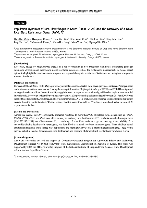 Dan-Dan Zhao(Crop Environment Research Division, Department of Crop Sciences, National Institute of Crop and Food Science, Rural Development Administration, Wanju, 55365, Korea)