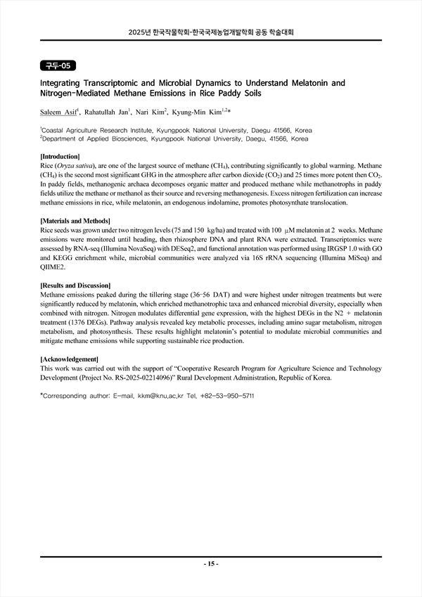 Saleem Asif(Coastal Agriculture Research Institute, Kyungpook National University, Daegu 41566, Korea)