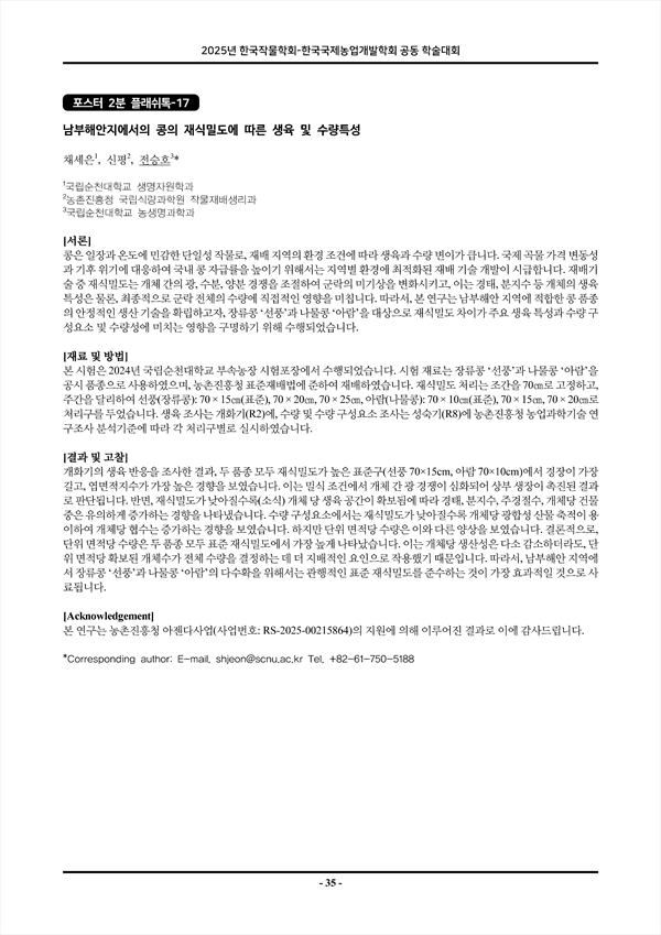 2025 한국작물학회-한국국제농업개발학회 공동 학술대회 (2025.10)