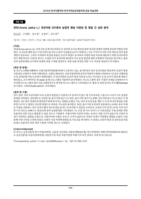 2025 한국작물학회-한국국제농업개발학회 공동 학술대회 (2025.10)