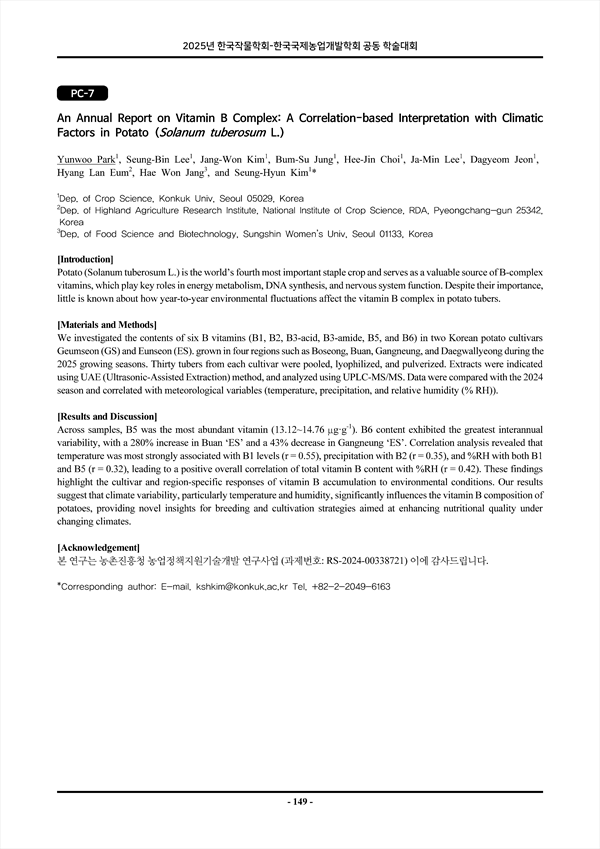 Seung-Bin Lee(Dep. of Crop Science, Konkuk Univ, Seoul 05029, Korea)