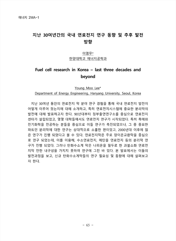 이영무(한양대학교 에너지공학과) | Young Moo Lee (Department of Energy Engineering, Hanyang University, Seoul, Korea)