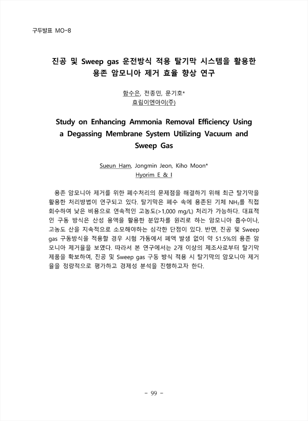 Study on Enhancing Ammonia Removal Efficiency Using a Degassing Membrane System Utilizing Vacuum and Sweep Gas
