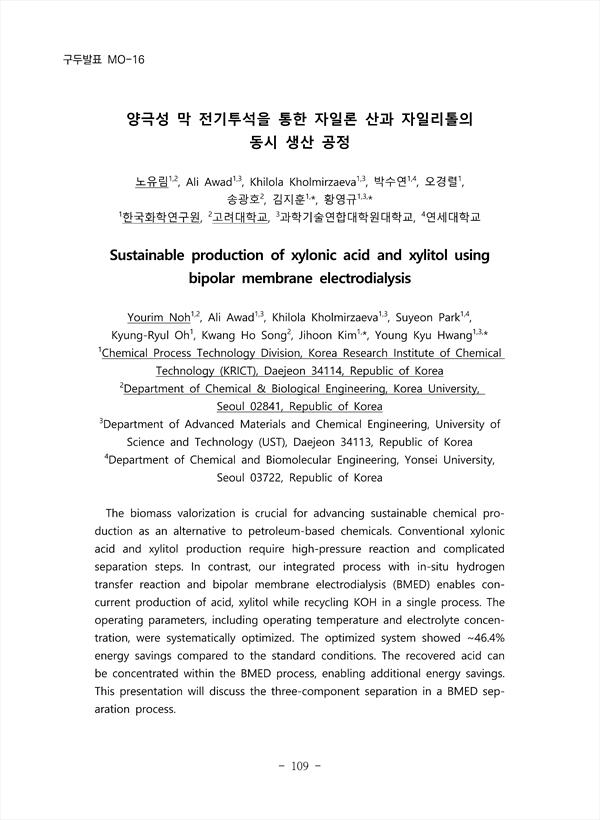 노유림(한국화학연구원, 고려대학교) | Yourim Noh (Chemical Process Technology Division, Korea Research Institute of Chemical Technology (KRICT), Daejeon 34114, Republic of Korea, Department of Chemical & Biological Engineering, Korea University, Seoul 02841, Republic of Korea)