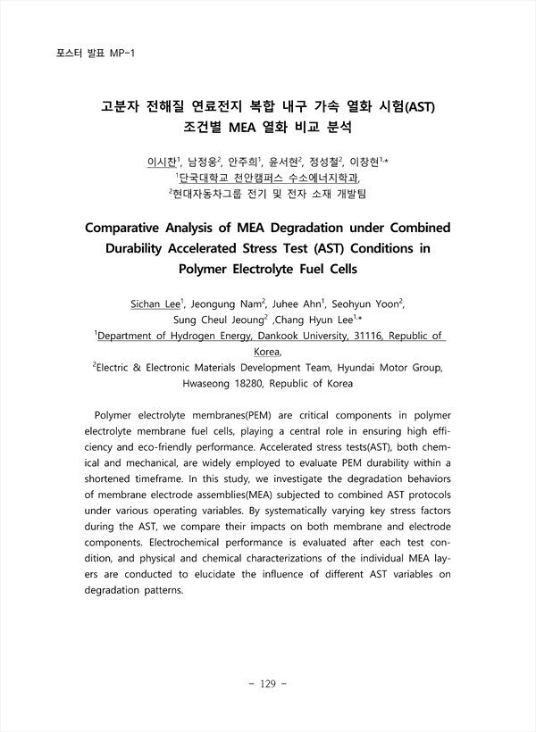 이시찬(단국대학교 천안캠퍼스 수소에너지학과) | Sichan Lee (Department of Hydrogen Energy, Dankook University, 31116, Republic of Korea)