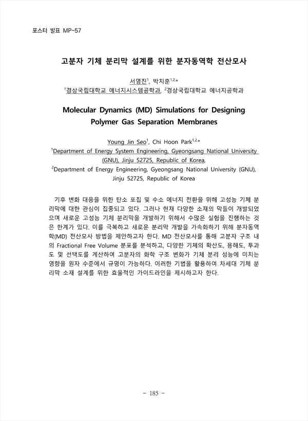 서영진(경상국립대학교 에너지시스템공학과) | Young Jin Seo (Department of Energy System Engineering, Gyeongsang National University (GNU), Jinju 52725, Republic of Korea)