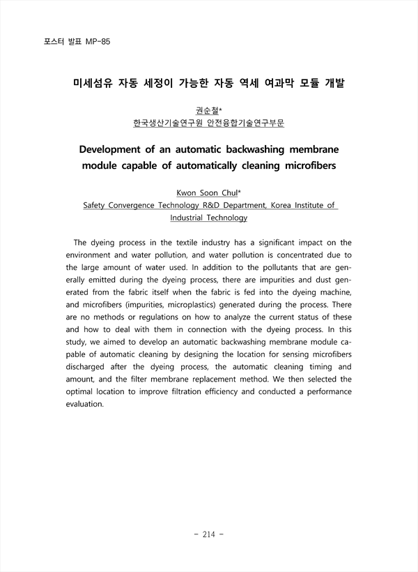 Development of an automatic backwashing membrane module capable of automatically cleaning microfibers