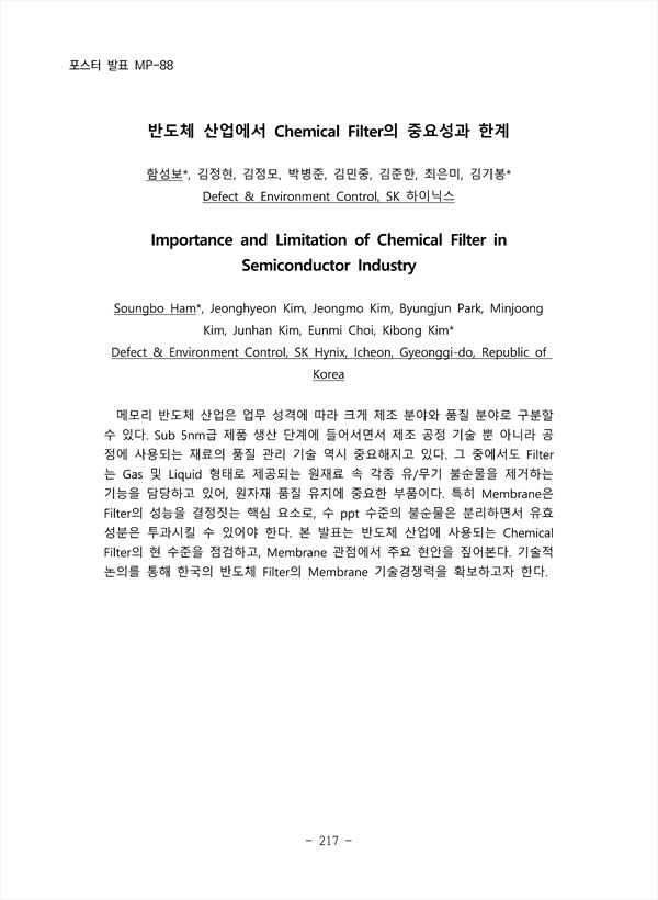함성보(Defect & Environment Control, SK 하이닉스) | Soungbo Ham (Defect & Environment Control, SK Hynix, Icheon, Gyeonggi-do, Republic of Korea)