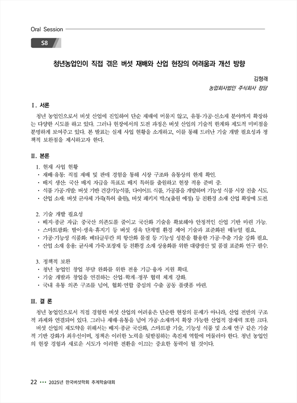 청년농업인이 직접 겪은 버섯 재배와 산업 현장의 어려움과 개선 방향