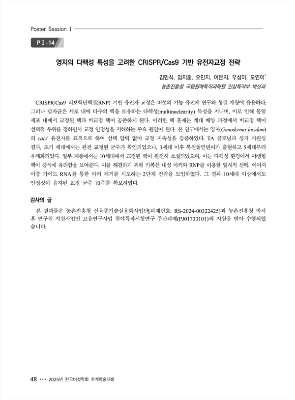 영지의 다핵성 특성을 고려한 CRISPR/Cas9 기반 유전자교정 전략