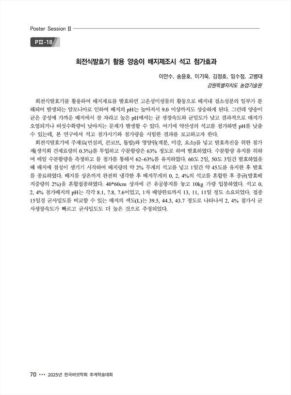 회전식발효기 활용 양송이 배지제조시 석고 첨가효과