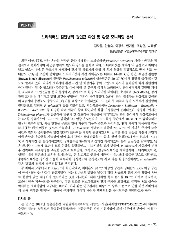 느타리버섯 갈반병의 원인균 확인 및 환경 모니터링 분석