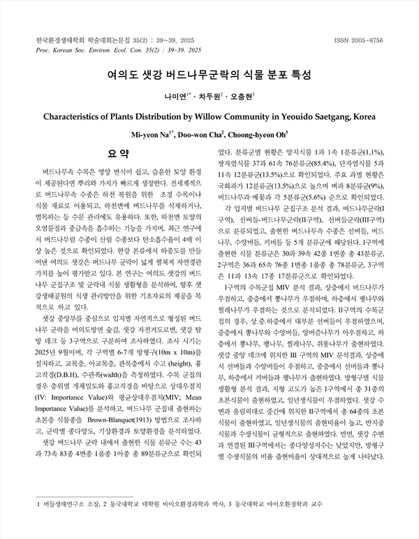 Characteristics of Plants Distribution by Willow Community in Yeouido Saetgang, Korea
