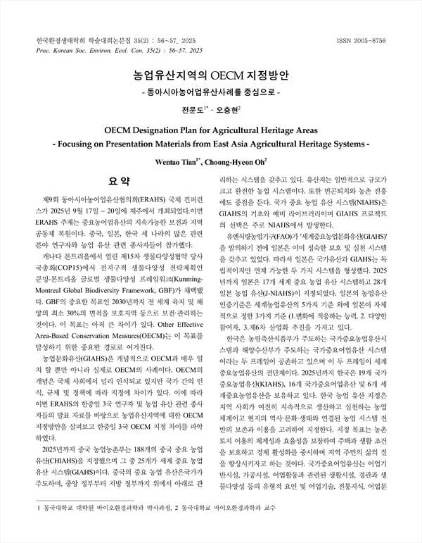 OECM Designation Plan for Agricultural Heritage Areas - Focusing on Presentation Materials from East Asia Agricultural Heritage Systems -