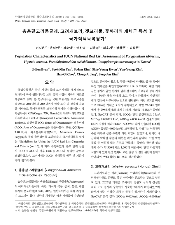 Population Characteristics and IUCN National Red List Assessment of Polygonatum sibiricum, Hystrix coreana, Pseudolysimachion sieboldianum, Campylotropis macrocarpa in Korea