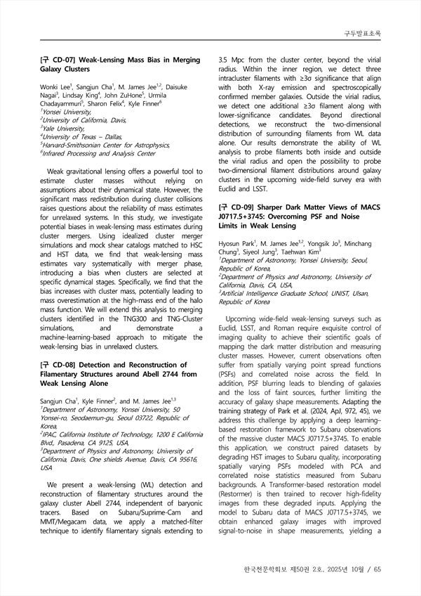 M. James Jee(Department of Astronomy, Yonsei University, 50 Yonsei-ro, Seodaemun-gu, Seoul 03722, Republic of Korea, Department of Physics and Astronomy, University of California, Davis, One shields Avenue, Davis, CA 95616, USA)