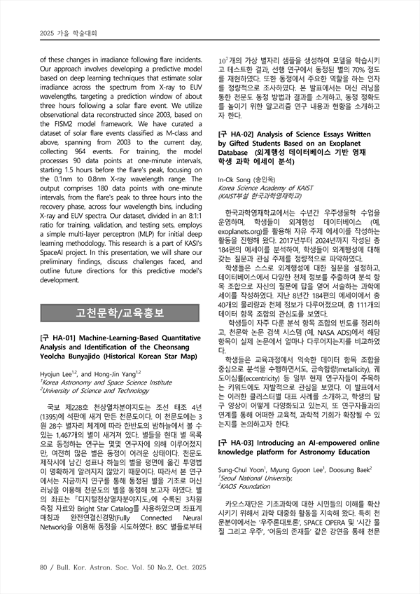 [구 HA-01] Machine-Learning-Based Quantitative Analysis and Identification of the Cheonsang Yeolcha Bunyajido (Historical Korean Star Map)