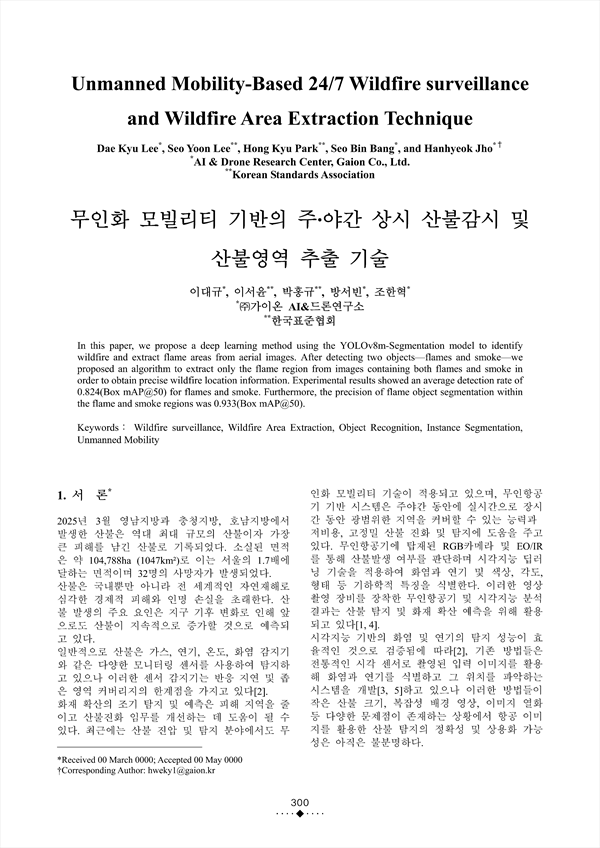 무인화 모빌리티 기반의 주·야간 상시 산불감시 및 산불영역 추출 기술