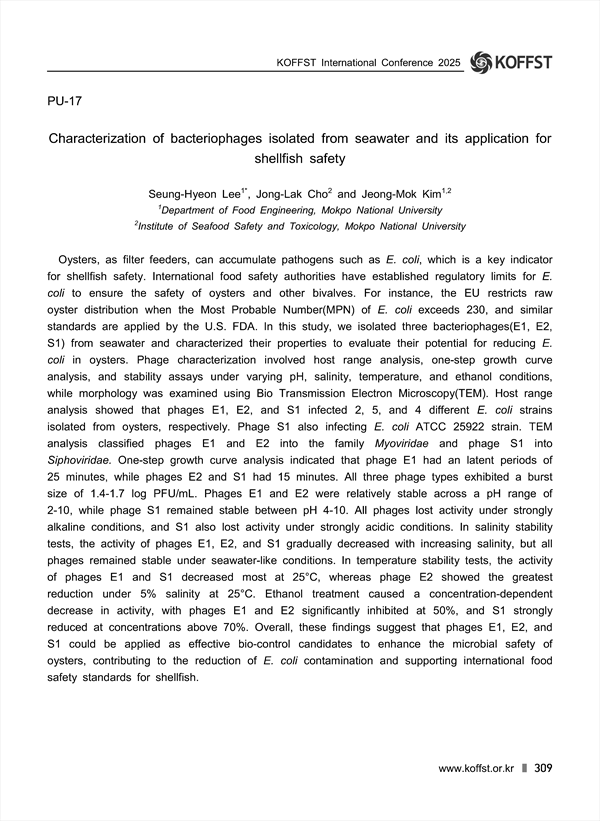 Jeong-Mok Kim(Department of Food Engineering, Mokpo National University, Institute of Seafood Safety and Toxicology, Mokpo National University)