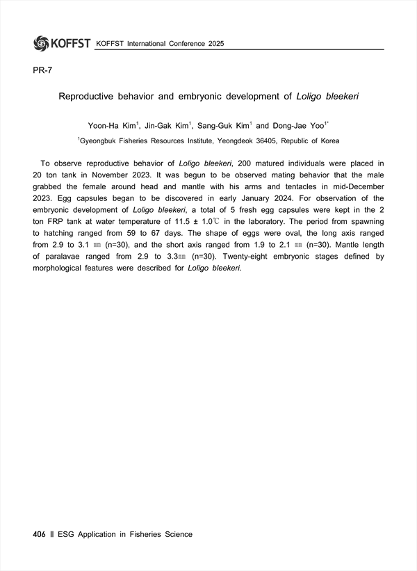 Yoon-Ha Kim(Gyeongbuk Fisheries Resources Institute, Yeongdeok 36405, Republic of Korea)