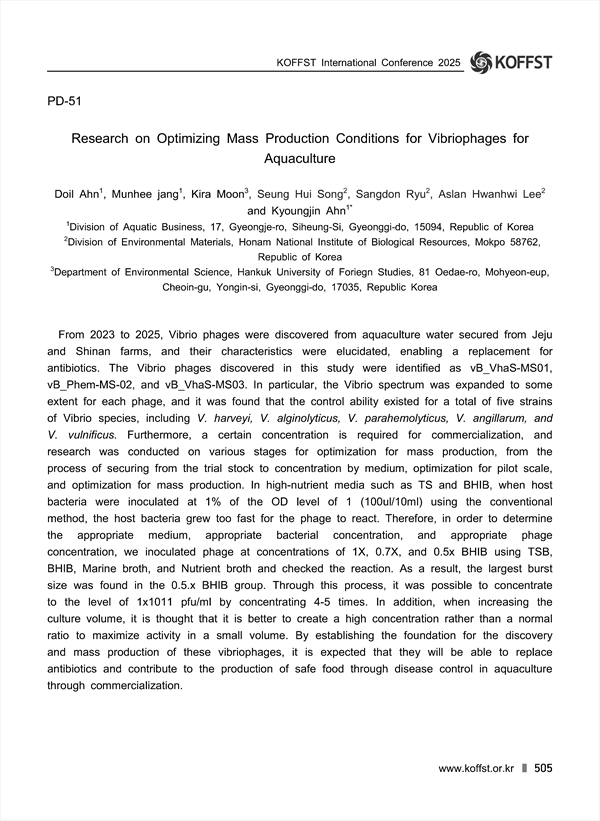 Doil Ahn(Division of Aquatic Business, 17, Gyeongje-ro, Siheung-Si, Gyeonggi-do, 15094, Republic of Korea)
