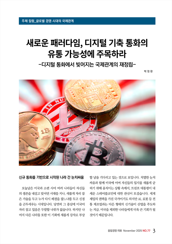 새로운 패러다임, 디지털 기축 통화의 유통 가능성에 주목하라 -디지털 통화에서 빚어지는 국제관계의 재정립-