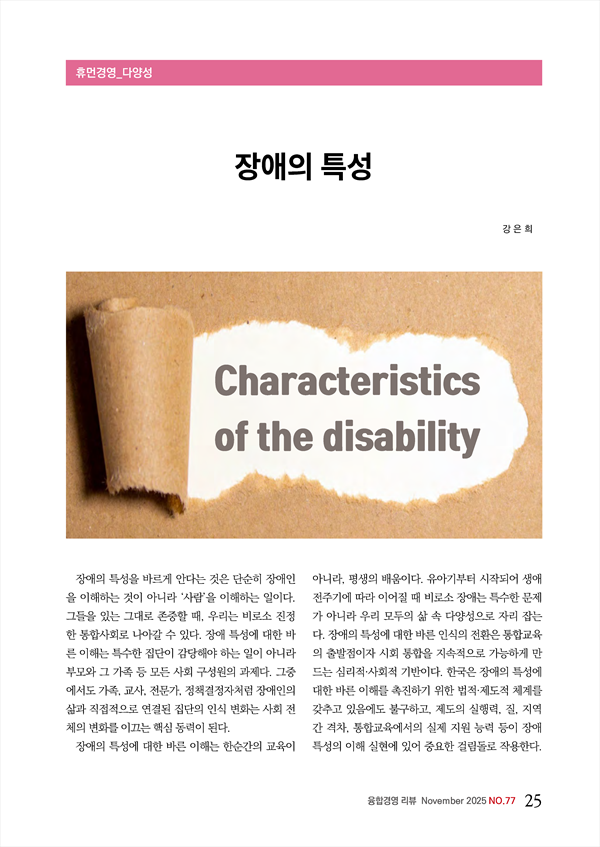 나의 질문 챗GPT의 대답 1. 장애 이해의 출발점 2. 장애의 특성을 바르게 이해하려는 노력의 필요성 3. 장애 특성을 바르게 알기 위한 구체적 노력 4. 바른 이해를 방해하는 요인 나의 질문 챗GPT의 대답 1. 사회‧문화적 요소 2. 언어적 요소 3. 제도적 요소 4. 심리적 요소 5. 교육적 요소 나의 질문 챗GPT의 대답 1. 일반 국민(시민 전체) 2. 장애인의 가족 3. 교육 종사자(교사·학교 관리자 등) 4. 비장애 학생 및 또래 집단 5. 사회복지사, 특수교사, 치료사 등 전문가 집단 6. 정책결정자 및 행정 공무원 7. 기업 및 고용주 8. 미디어 종사자 및 콘텐츠 제작자 나의 질문 챗GPT의 대답 1. 유아기 교육 2. 학교 교육 전 과정 3. 성인기 이후 4. 가정 교육 5. 사회 전반 나의 질문 챗GPT의 대답 《제도적 기반 및 긍정적 측면》 《현실적 문제점 및 한계》 나의 질문 챗GPT의 대답 1. 통합교육의 기반이 되는 ‘바른 이해’ 2. 교사와 학생의 인식이 통합의 질을 결정 3. ‘ 형식적 통합’을 ‘실질적 통합’으로 바꾸는 바른이해 나의 질문 챗GPT의 대답 1. 인식의 변화(Attitudinal Change) 2. 개별화된 이해(Individualized Understanding) 3. 교사의 전문성 및 태도(Teacher Competence& Attitude) 4. 또래 학생의 수용과 공감(Peer Acceptance &Empathy: 5. 학교 문화와 제도의 지원(Inclusive SchoolCulture) 나의 질문 챗GPT의 대답 1. 장애에 대한 바른 이해와 수용 2. 교사의 전문성과 지원 체계 3. 놀이 중심의 상호작용 환경 조성 4. 또래 유아의 긍정적 경험과 수용성 형성 5. 가정과의 긴밀한 협력 나의 질문 챗GPT의 대답 1. IEP·ISP는 ‘도구’일 뿐, ‘출발점’이 아니다 2. 장애 특성의 이해가 모든 계획의 근간 3. 부모의 자녀의 장애특성에 대한 이해는 ‘현장 정보’ 그 자체 나의 질문 챗GPT의 대답 1. 시간적 밀착도 2. 연속적 관찰 3. 상황 맥락 이해 4. 감정·신체 신호 민감도 5. 발달 역사와 경험 나의 질문 챗GPT의 대답 1. 행동의 의미는 상황에 따라 다름 2. 패턴과 연속성 파악 필요 3. 내적 상태를 읽는 능력 필요 4. 맥락적 이해 필요 나의 질문 챗GPT의 대답 1. 부모가 자녀 특성을 잘 안다는 것의 의미 2. 그러나 ‘잘 안다’는 것의 한계 나의 질문 챗GPT의 대답 1. 수용이 전제되지 않으면 관찰·이해가 왜곡됨 2. 수용은 객관적 관찰과 해석의 기반 3. 수용 후 관찰 → 이해 → 지원 나의 질문 챗GPT의 대답 1. 발달 단계에 대한 이해 2. 장애 특성에 대한 정확한 이해 3. 비교와 판단보다 ‘관찰과 수용’ 4. 일관된 일상과 신뢰 형성 5. 부모 자신의 태도 점검 나의 질문 챗GPT의 대답 1. 진단 중심적 시각 2. 과잉치료·과잉보호 3. 행동과 특성에 대한 오해 4. 가정 내 불안과 스트레스 증가 5. 장애 특성 파악보다 ‘치료 중심’ 우선 나의 질문 챗GPT의 대답 1. 바른 정보 제공과 교육 2. 부모의 심리적 지원 3. 전문가와 부모의 협력 구조 4. 실천적 도구와 환경 제공 5. 커뮤니티와 지원 네트워크 나의 질문 챗GPT의 대답 1. 접근으로 해결 가능한 부분 2. 한계와 해결이 어려운 부분 3. 핵심 시사점 나의 질문 챗GPT의 대답 1. 심리적 충격과 혼란 2. 정보와 의미 해석의 혼돈 3. 정체성 충돌 4. 감정과 행동의 즉각적 반응 5. 전환점이자 출발점 나의 질문 챗GPT의 대답 1. 심리적 안정 확보 2. 정확한 정보 수집 3. 관찰 중심의 초기 기록 4. 장기적 목표 설정 5. 지원 네트워크 구축 6. 행동의 우선순위 결론
