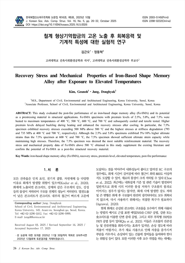 철계 형상기억합금의 고온 노출 후 회복응력 및 기계적 특성에 대한 실험적 연구