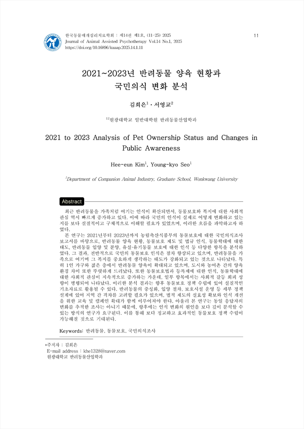 Journal of Korean Association of Animal Assisted Psychotherapy