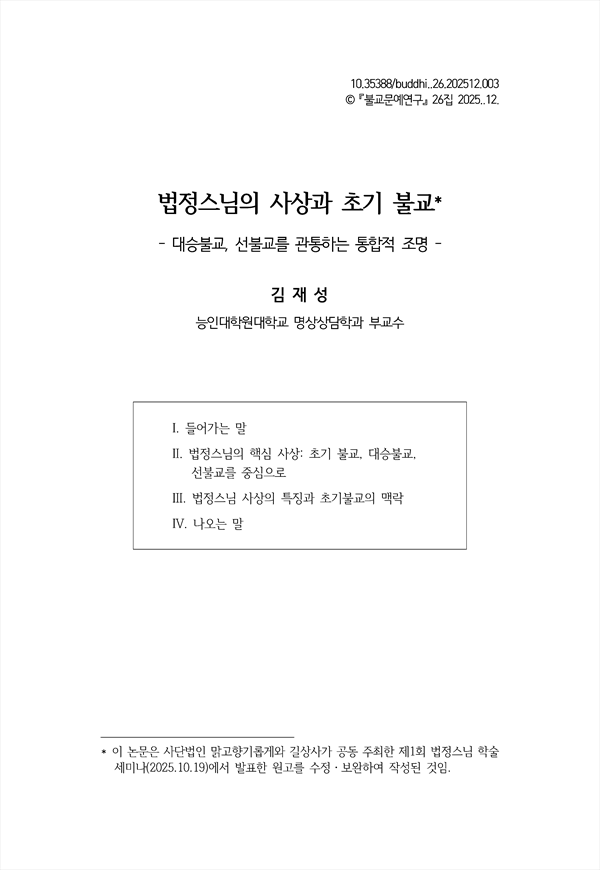 법정스님의 사상과 초기 불교 - 대승불교, 선불교를 관통하는 통합적 조명 -