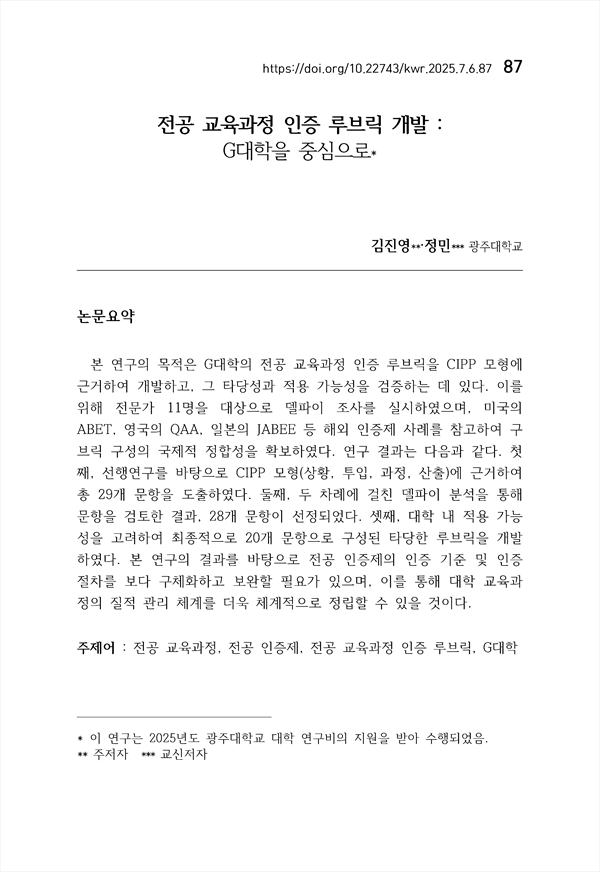 전공 교육과정 인증 루브릭 개발 : G대학을 중심으로