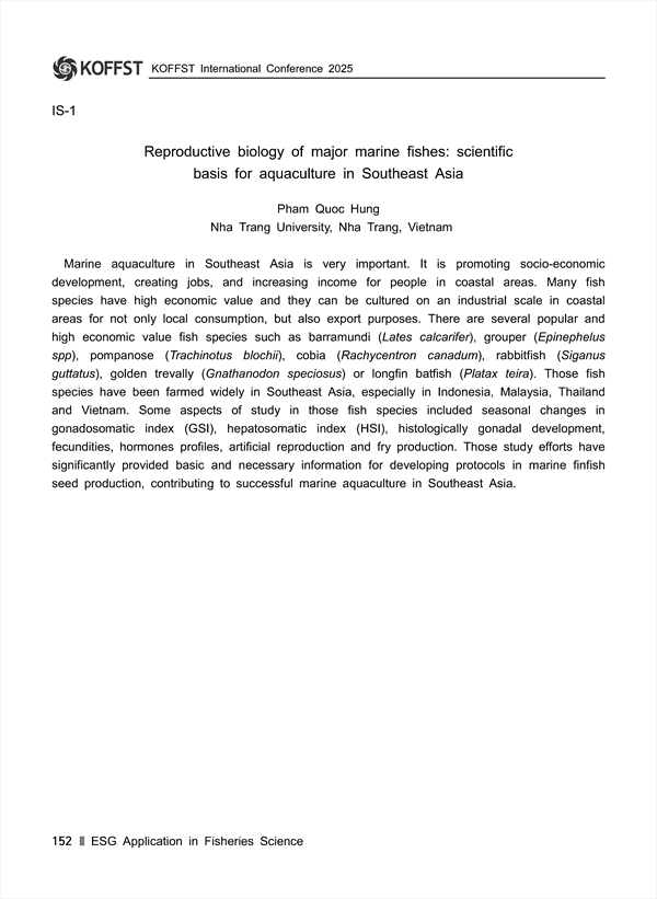 KOFFST International Conference 2025 ESG Application in Fisheries Science